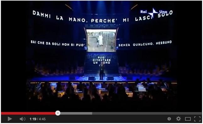 Lagu Giuseppe Povia (baca: Juseppe Povia) dengan judul Quando i bambini fanno ‘ooh’ (ketika anak-anak berujar keheranan ‘ooh’) mungkin cocok menjadi jembatan bacaan pertama dan bacaan Injil hari ini. Lirik yang digarisbawahi oleh stasiun TV Rai Uno berarti: berikan/ulurkanlah tanganmu (bantulah aku), kenapa kamu biarkan aku sendiri? Kamu kan tahu, seseorang tak bisa sendirian, tanpa orang lain, menjadi manusia. Dengan kata lain, orang bergantung pada pihak lain untuk benar-benar menjadi manusia.