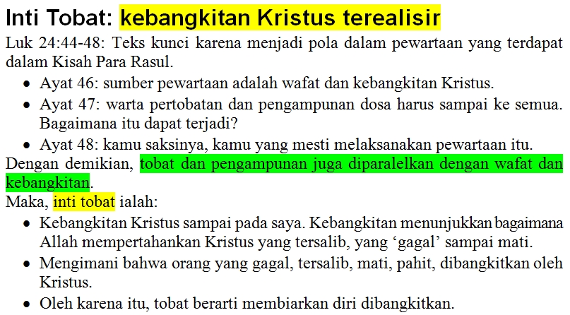 3. Inti tobat: Kebangkitan Kristus terealisasi