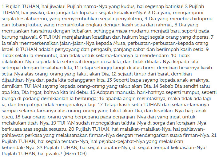 – Kitab Mazmur 103 (Tuhan Engkau telah mencari aku dan mengenal diriku)
