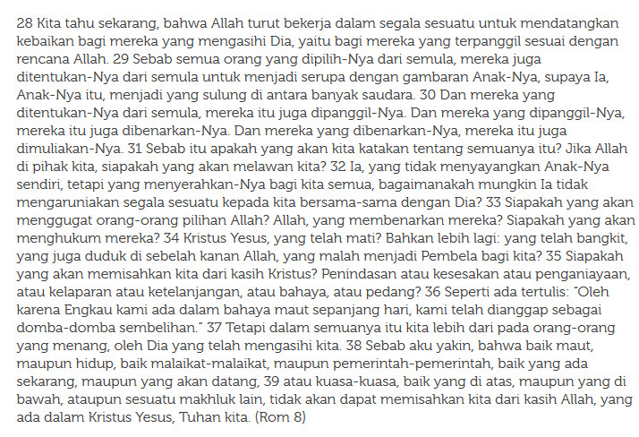 – Surat kepada Jemaat di Roma 8,28-39 (Apa yang dapat memisahkan kita dari cinta Tuhan?)