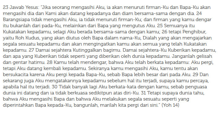 – Injil Yohanes 14,23-31 (Firman yang kamu dengar itu bukanlah dari Aku, melainkan dari Bapa yang mengutus Aku)