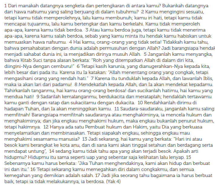 Yak 4,1-17 (Cinta pada kejahatan dunia adalah musuh Allah)