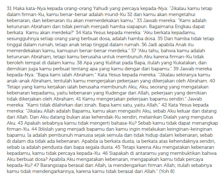 Yoh 8,31-47 (Siapapun yang tinggal dalam dosa, dia adalah budak dosa)