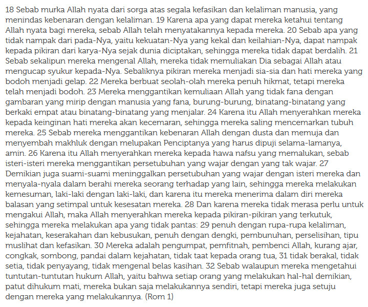– Rom 1,18-32 (Kemanusiaan penuh dosa tanpa Kristus)
