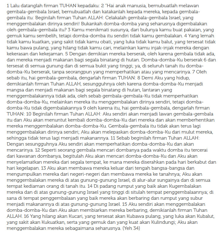 – Yeh 34,1-16 (Perumpamaan tentang gembala)