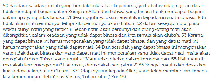– 1Kor 15,50-57 (Wahai maut, di manakah sengatmu)