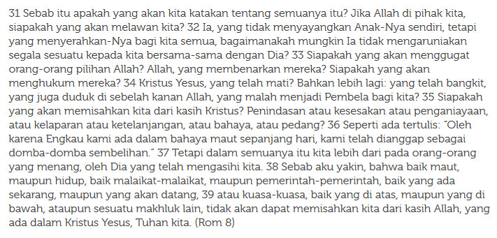 – Rom 8,31-39 (Jika Allah di pihak kita, siapa yang akan melawan kita?)