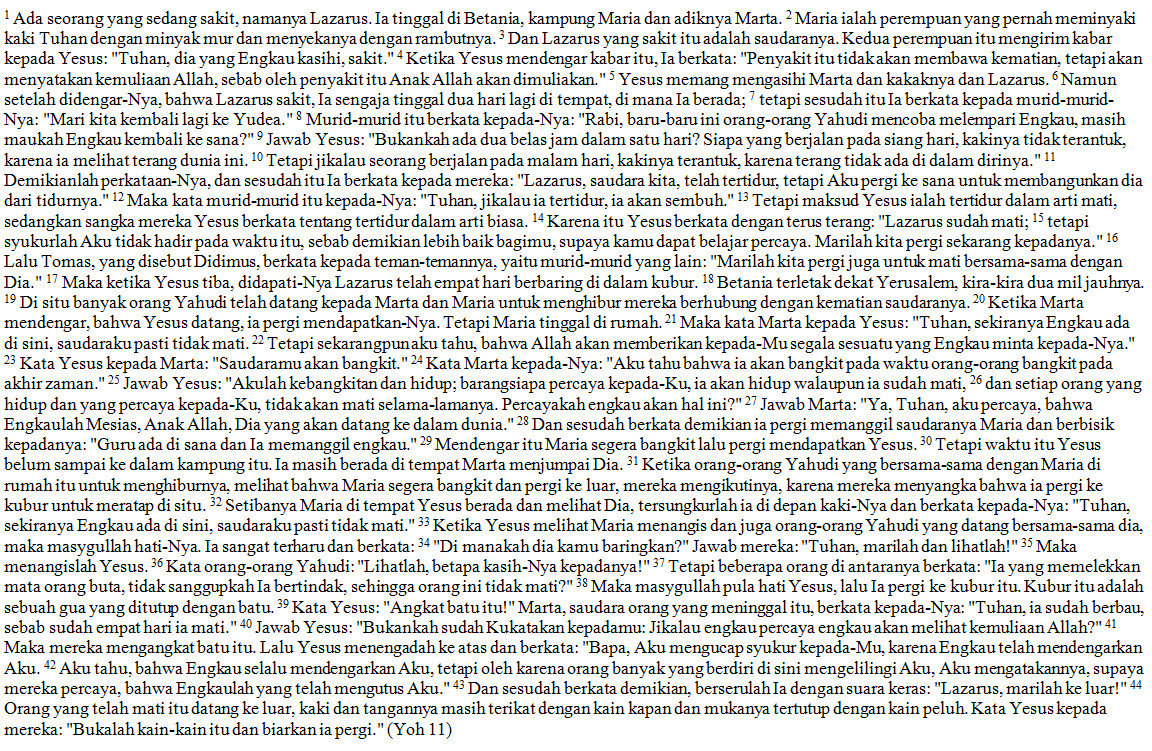 – Yoh 11,1-44 (Akulah kebangkitan dan hidup)