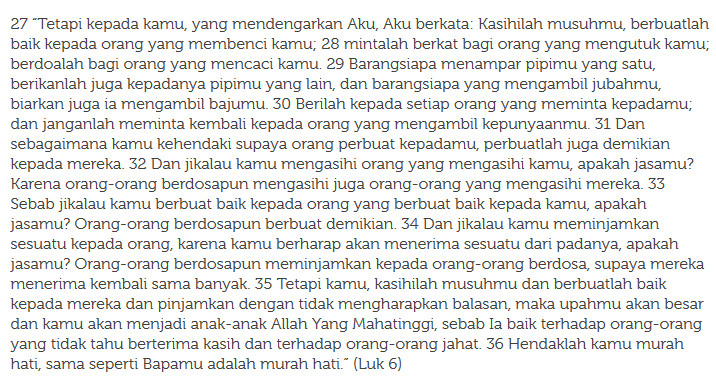– Luk 6,27-36 (Hendaklah kamu berbelas kasih seperti Bapamu)