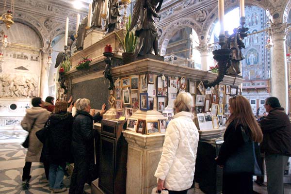 Pernah ngantri untuk berdoa di samping makam Santo Antonius dari Padua ini? Foto ini tertanggal 20 November 2012, jam 06.51 pagi, tampaknya bukan waktu favorit untuk berkunjung. Jika sudah ramai, antriannya tak beda jauh dari antrian masuk tempat konser rock; bahkan meskipun sedang berlangsung misa, pengunjung yang tak ikut misa tetap berdesak-desakan untuk sekadar meletakkan telapak tangan pada sisi makam Santo Antonius Padua. Jika dianggap terlalu lama berhenti, orang akan ditegur, dipersilakan berjalan meninggalkan tempat itu.