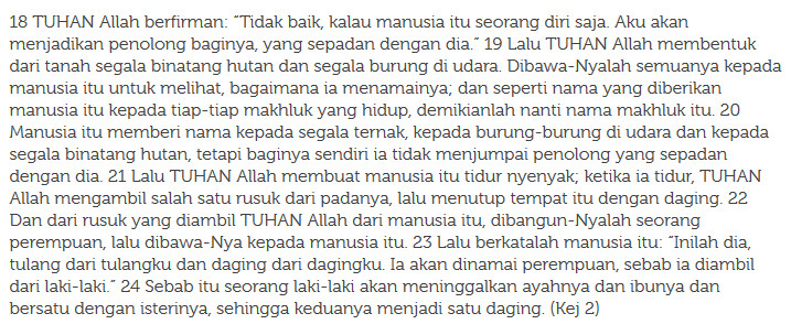 – Kej 2,18-24 (Tidak baiklah manusia itu sendirian)