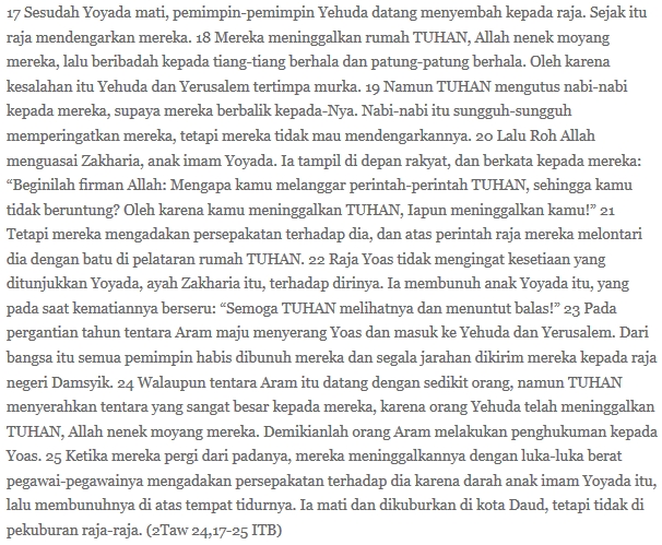 Bacaan Injil hari ini memanggil pendengarnya untuk mengabdi satu tuan saja: Kerajaan Allah. Jadi, persoalannya bukanlah pertama-tama mempertentangkan Jokowi-Prabowo dengan debat, apalagi orang-orang di sekeliling mereka (yang bisa jadi adalah garong-garong yang butuh perlindungan politik). Persoalannya ialah menentukan kriteria yang lebih mengarah kepada Kerajaan Allah itu: membela kemanusiaan bukan sebagai ide abstrak, melainkan manusia yang konkret dan niscaya begitu beragam. Di sini, janji saja, apalagi slogan “harus ini itu” jelas tidak cukup!
