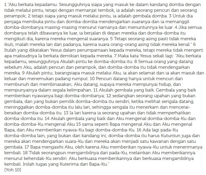 – Yoh 10,1-18 (Akulah gembala yang baik)