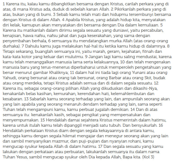 – Kol 3,1-17 (Manusia lama dan manusia baru)