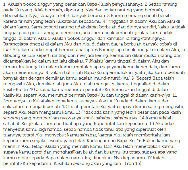 – Yoh 15:1-17 (Pokok anggur dan rantingnya)