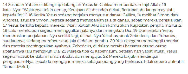 – Mrk 1,14-22 (Panggilan para murid pertama)