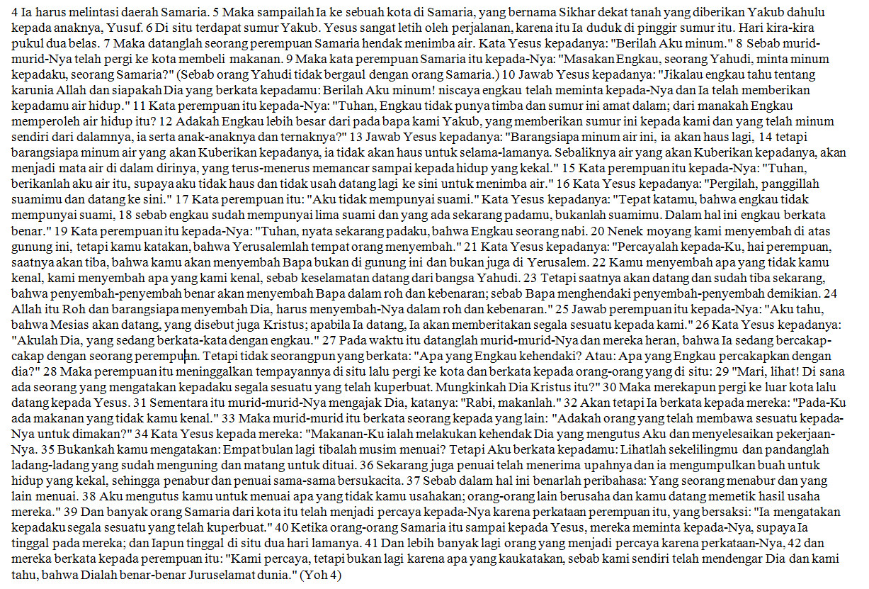 – Yoh 4,4-42 / Yoh 8,1-11 (Perempuan Samaria / Perempuan yang berzinah)