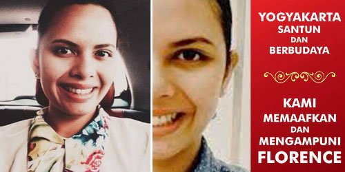 Setelah ada protes spontan (?) dari beberapa pihak yang mengklaim diri sebagai representasi warga Jogja, dan Florence sendiri mengalami bullying di dunia virtual beserta demo di dekat kompleks UGM, Florence membuat pernyataan maaf.