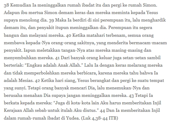 […] Tak mengherankan dalam bacaan hari ini diungkapkan: Orang yang baik mengeluarkan barang yang baik dari perbendaharaan hatinya yang baik dan orang yang jahat mengeluarkan barang yang jahat dari perbendaharaannya yang jahat. Karena yang diucapkan mulutnya, meluap dari hatinya. Tentu cinta bukanlah kata-kata semata: hati yang meluap itu menerjang kata-kata dan menggerakkan seluruh komponen dirinya untuk sujud tafakur kepada Allah dan senantiasa berujar, “Tuhan, inilah aku, utuslah aku!” […]