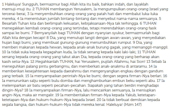 – Mzm 147 (Tuhan membangun Yerusalem kembali)