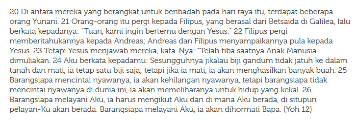 – Yoh 12,20-26 (Tibanya waktu Yesus)