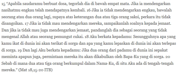 Prinsip kasih inilah yang diharapkan menjadi titik tolak teguran dan orang tak perlu memaksakan diri atau kecewa atau merasa diri gagal: kegagalan diakui dalam kasih, tetapi tidak menghancurkan!