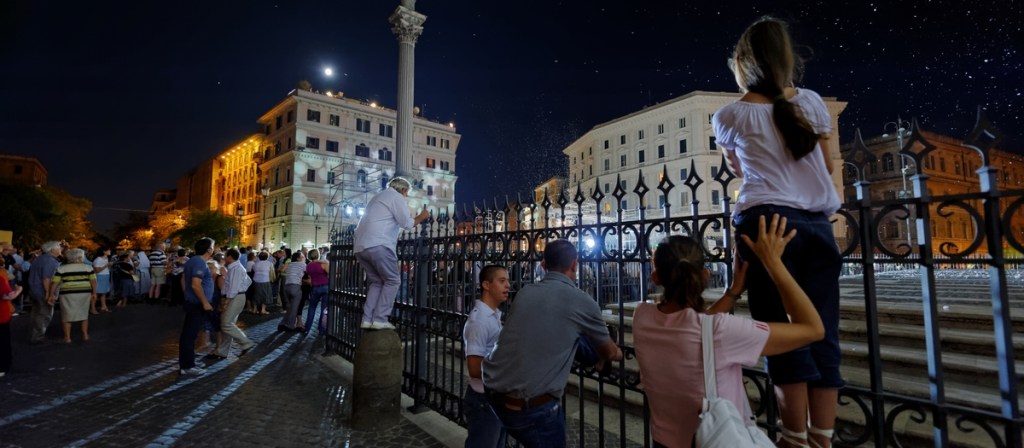 The picture above was taken on August 5, some years ago. In fact, each year on August 5, during the celebration of the feast of the Dedication of the Basilica di Santa Maria Maggiore, a custom that commemorates the story of the miraculous snowfall is still alive. At the end of the Solemn Mass inside the Basilica, a shower of white rose petals is dropped from the dome and at sunset on the same day, an artificial snowfall is performed as an attraction in the square outside. This performance of imitating nature might not…
