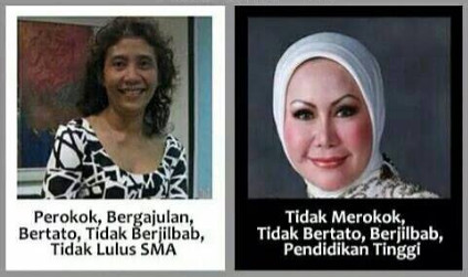 Dengan pendekatan itu, orang cenderung, secara bawah sadar, memandang negatif Susi bertato dan menyanjung Susi berhijab. Maka bisa muncul harapan supaya Susi ini berhenti merokok dan bertobat! Alasannya, perilakunya ini bisa jadi contoh jelek bagi pendidikan anak dan kontradiktif dengan revolusi mental Jokowi.