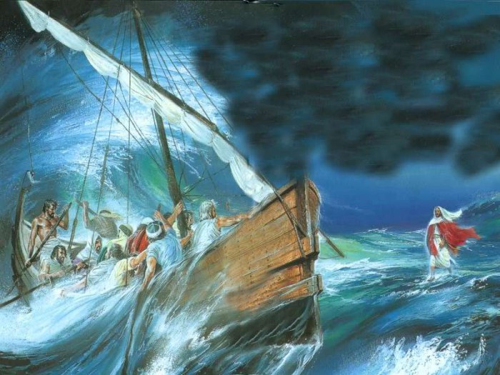 Baru kemarin para murid mengalami mukjizat penggandaan lima roti dan dua ikan, tetapi mereka belum mengerti juga bahwa Allah menyertai mereka. Alih-alih percaya dan menaruh harapan pada Allah, mata mereka malah blawur dan mengira sosok guru mereka sebagai hantu. Kenapa? Karena belum ngerti kuasa Allah yang bahkan bisa bekerja melalui kekurangan atau kelemahan, para murid begitu takut pada angin sakal yang memang dampaknya dahsyat sih. Karena terokupasi oleh ketakutan itu, fokus pandangan para murid jadi bias. Tuhan jadi hantu.