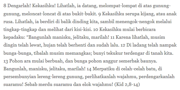 Bunda Maria, bantulah aku untuk membiarkan hati terbuka pada roh yang mengobarkan diri untuk mencintai Tuhan. Amin.