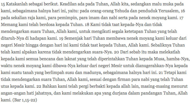 Jangan tanya kenapa teks bacaan hari ini memicu kemunculan kata ‘sontoloyo’ di kepala saya. Ini memang isinya celaan terhadap orang-orang yang tak mau bertobat: mereka yang tak solider dengan kepentingan bersama, mereka yang cuma cari enak sendiri dan tak mau bertanggung jawab manakala azab datang, mereka yang pura-pura tak sengaja membuang sampah di stasiun nan bersih, mereka yang tabrak lari, mereka yang korupsi, dan seterusnya. Bisa dibuat litani untuk para sontoloyo.