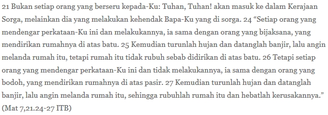 Tuhan, mohon rahmat supaya tindakan kami sungguh berakar pada Sabda-Mu. Amin.