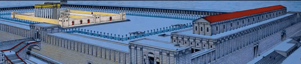 Yang dimaksud dengan kompleks Bait Allah, yang dibangun selama 46 tahun ialah yang berwarna cerah dalam gambar di bawah ini.
