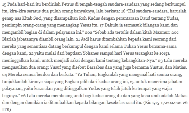 Gagasan macam itulah yang juga nuansanya ada dalam teks bacaan hari ini, yang pada bagian tertentu perlu diwaspadai karena problem terjemahan: Aku telah menjaga mereka dan tidak ada seorang pun dari mereka yang binasa selain dia yang telah ditentukan untuk binasa. Yang saya garisbawahi, itulah yang perlu diwaspadai karena bisa membangun gagasan dalam kepala orang bahwa ada takdir bahwa si A masuk neraka dan si B masuk surga. Terjemahan yang lebih tepat, menurut tetangga sebelah yang ahli filologi, ialah “anak kebinasaan”, yang berarti orang yang memilih jalan gelap, jatuh dalam kegelapan, jalan gabener, tak tertolong lagi oleh orang baik yang berniat membantunya.