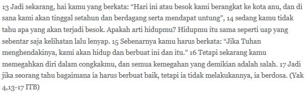 Loh, ini bukan soal ketulusan, Mo! Ini konsistensi dan totalitas. Jangan maunya ambil enaknya dan gak terima gak enaknya dong. Kalau mau ikut Yesus ya total ikut dia, termasuk ikut jalan salibnya!
