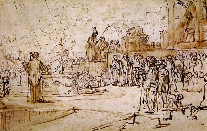 Saya kira itulah yang juga dimaksud oleh guru dari Nazareth itu dengan ungkapan penggenapan hukum. Ia tidak berpretensi mengganti hukum positif tetapi menggenapinya sedemikian rupa sehingga hukum positif itu senantiasa sinkron dengan idealisasi hukum yang mengabdi pada kemanusiaan dan ketuhanan juga. Seperti apa contohnya? Dalam bacaan pertama dituturkan bagaimana Nabi Elia bertarung melawan imam-imam palsu penyembah dewa Baal. Nabi Elia ini adalah representasi mereka yang dalam hati, budi, tulang, dan dagingnya terinskripsi Sabda Allah.