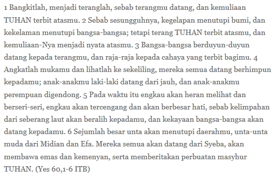 Anda diundang meneladan sikap iman tiga orang majus itu, dan perlu segera saya tambahkan bahwa ini bukan soal menjadi pemeluk agama tertentu, melainkan soal mengarahkan pandangan hidup pada bintang sesungguhnya: cinta Allah yang tanpa syarat itu.