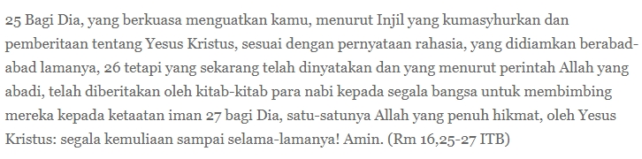 Rm, sgt keren dan menarik, bahwa faktanya ‘org2 istimewa’ ini dlm mengemban tugas tgjbnya msg2 krn wujud cinta pd Allah itu, semuanya mempunyai sikap kerendahan hati (humble) yg lbh kurang sama. Bunda Maria menjb, aku ini hamba Tuhan. Yohanes Pembaptis menjb, membuka tali kasutNya pun aku tdk layak. Romo menjb, terimakasih Ahong. Bahkan Yesus sendiri, tdk menganggap ‘Kesetaraan Itu’ sbg milik yg hrs dipertahankn. Dibalik kerecehan yg sama sekali tdk receh. Dr keteladanan itu sy menangkap makna, bhw ternyata ktk kt mengaku cinta pd Allah, mengaku umat Allah, mengikuti Allah, apalah judulnya, output sikap kita adh kerendahan hati. Yg sombong dn malah angkuh, bs jd bukan mengikuti Allah, tp (ego) diri sendiri. Makasih Rm.