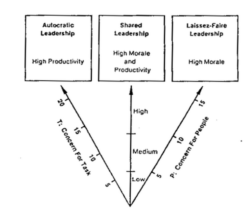 Seorang pemimpin yang tinggi dalam orientasi tugas tetapi rendah dalam cura personalis (baca: kura personalis, perhatian personal) juga akan rendah kualifikasi shared leadershipnya. Ia otoriter/otokratik dan terlalu terobsesi dengan tugas dan targetnya adalah produktivitas tinggi. Pemimpin ini memang punya banyak modal untuk memberi semangat dan mengeluarkan potensi anggota untuk berpartisipasi dalam kelompok, tetapi ini adalah perkara kejar setoran. Pada awal pembentukan kelompok, model seperti ini berfungsi, tetapi jika mekanisme itu berlangsung lama, sangat mungkin terjadi anggota mengalami burn-out (karena merasa diperlakukan sebagai mesin) dan tidak akan mengambil tanggung jawabnya sehingga pemimpinlah yang akan terus bekerja sendiri memikul beban.